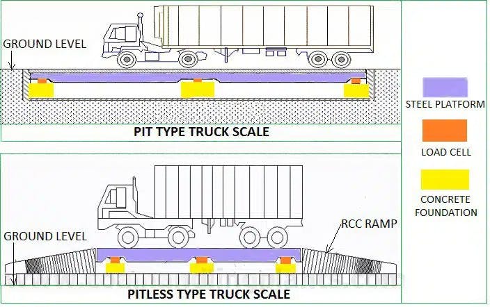 Pitless weighbridges are installed above ground level and require ramps on either side for vehicle access. This type is quicker and easier to install and is ideal for areas where pit excavation is difficult or costly.